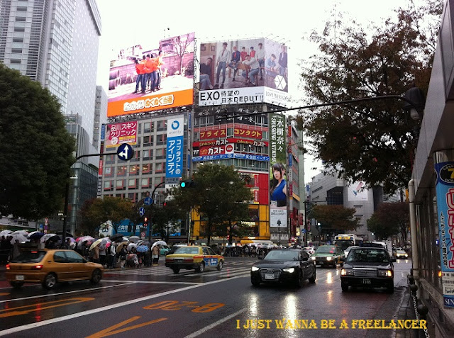 went to Shibuya again. It was still raining and seemed harder. Shibuya street